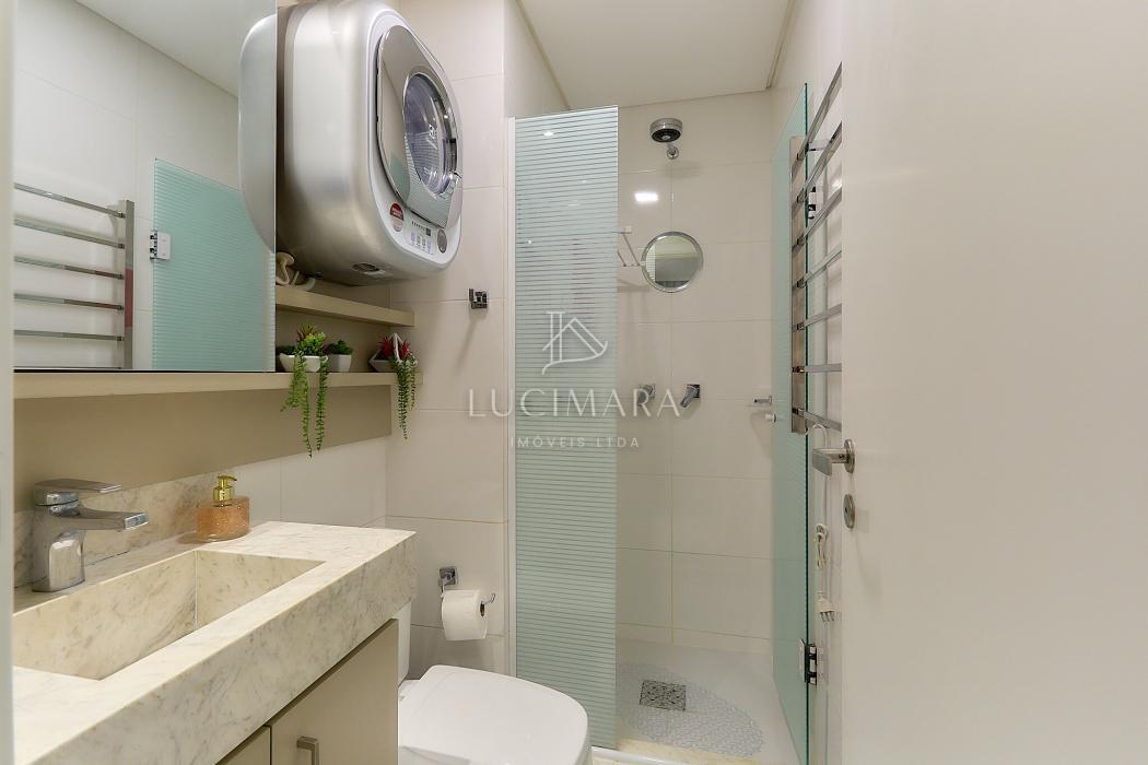 Banheiro com ótimo acabamento e máquina lava e seca já instalada.