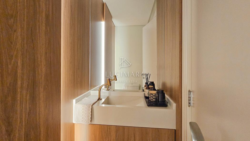 O apartamento possui alguns diferencias, como: churrasqueira a carvão na varanda; fechadura eletrônica por senha; central de ar-condicionado com saídas na sala de estar e em todos os dormitórios; banheira na suíte; vagas de garagem livre; e todos os móveis planejados pelo Griff Arquitetura.