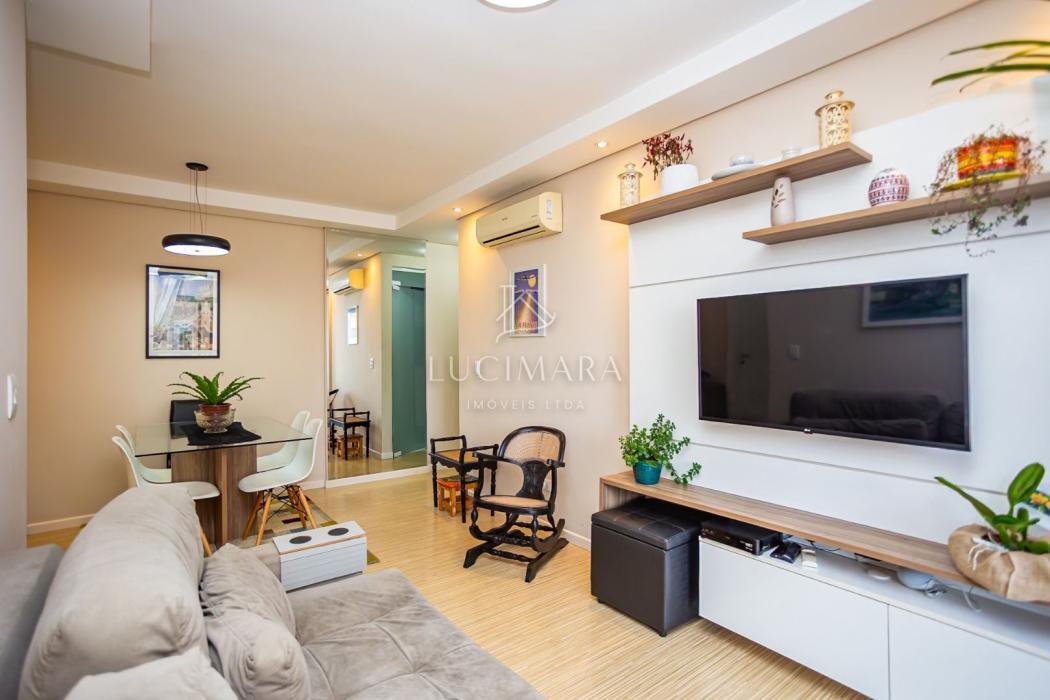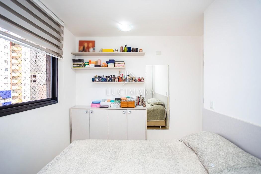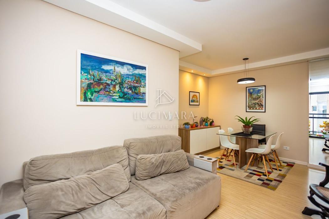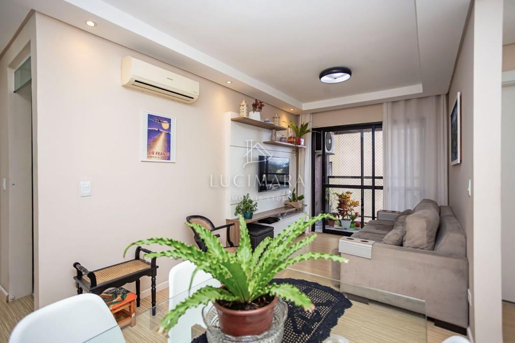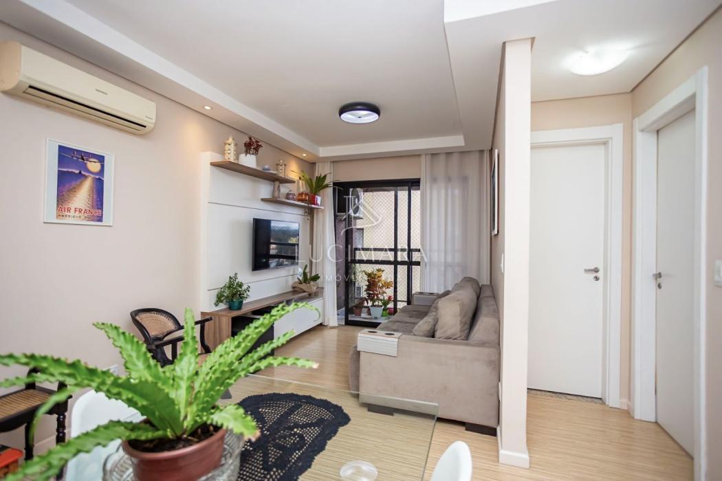 Apartamento 60,32 m² privativos, todo mobiliado com 77,54 m² totais.