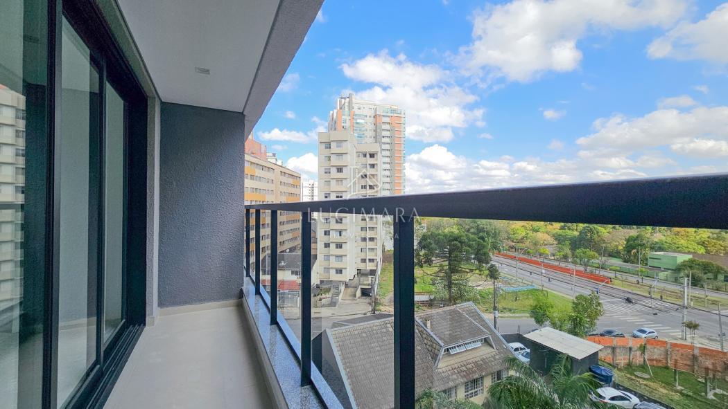 O studio que estamos disponibilizando aqui está no quinto andar da torre A, torre mais próxima da Rua João Dranka e o apartamento estando voltado para a Avenida Presidente Affonso Camargo. Garantindo visão direta para o lago e a estufa do Jardim Botânico de Curitiba.