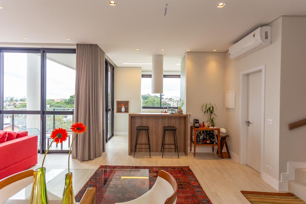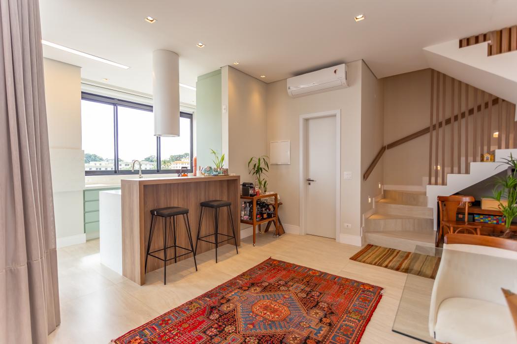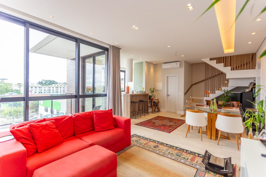 Apartamento duplex ensolarado e com bela vista no alto do Mercês. Localizado em um condomínio com excelente estrutura de lazer, este apartamento é perfeito para quem tem personalidade e quer viver com muito conforto. A cereja do bolo fica por conta do pé direito de quase 3m!