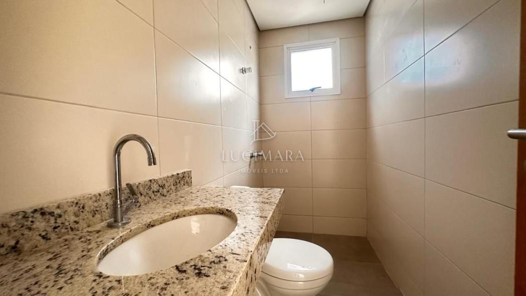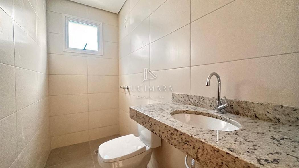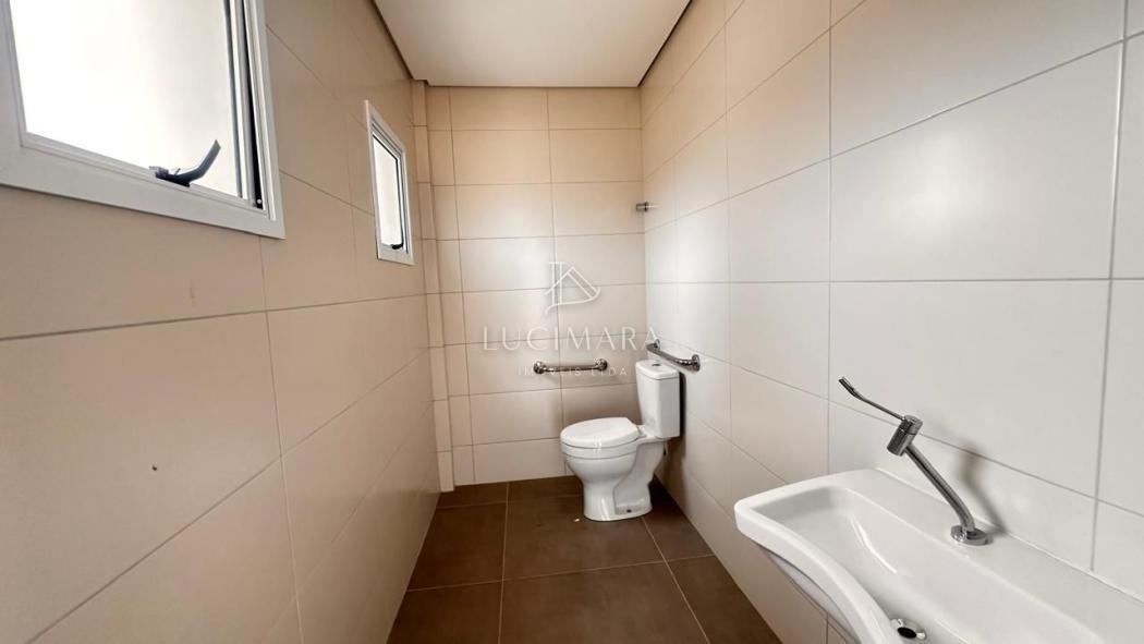 Banheiro social moderno e funcional.
