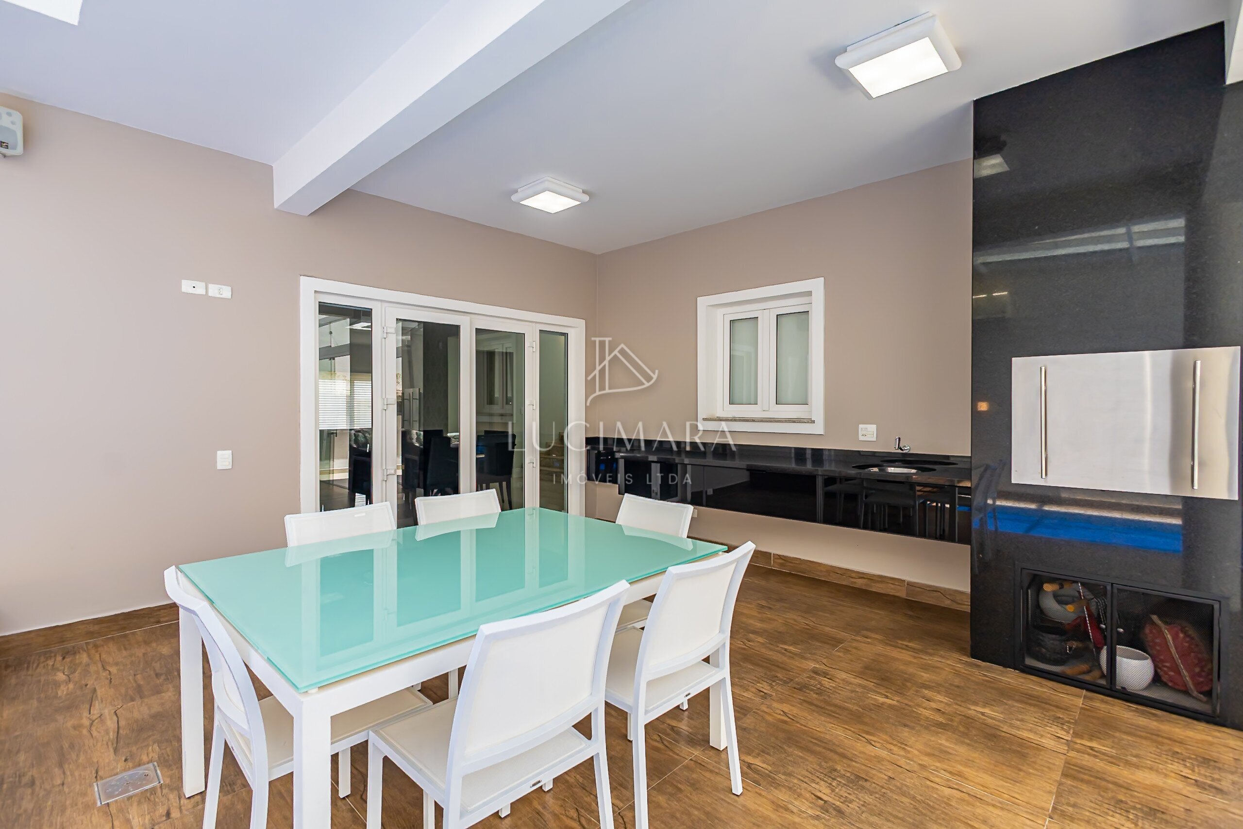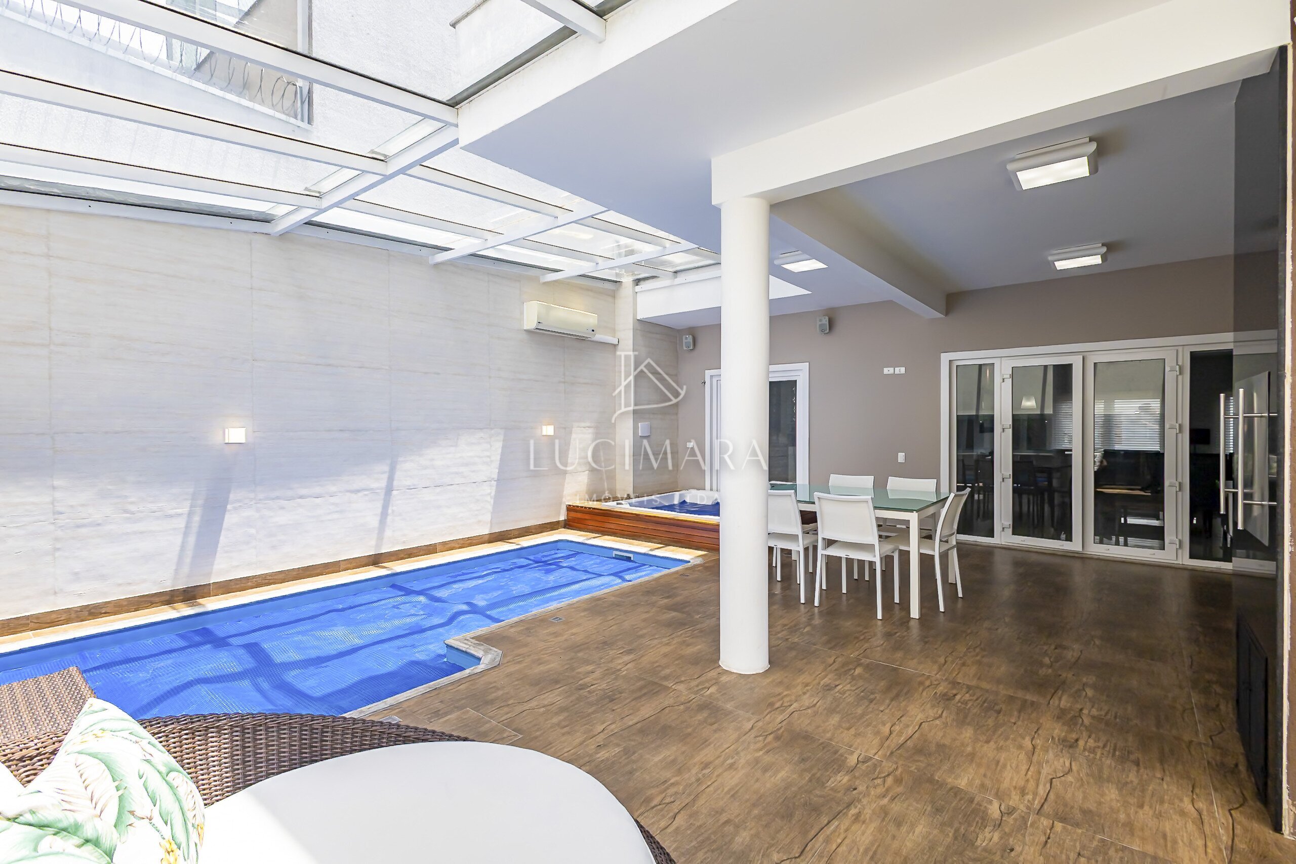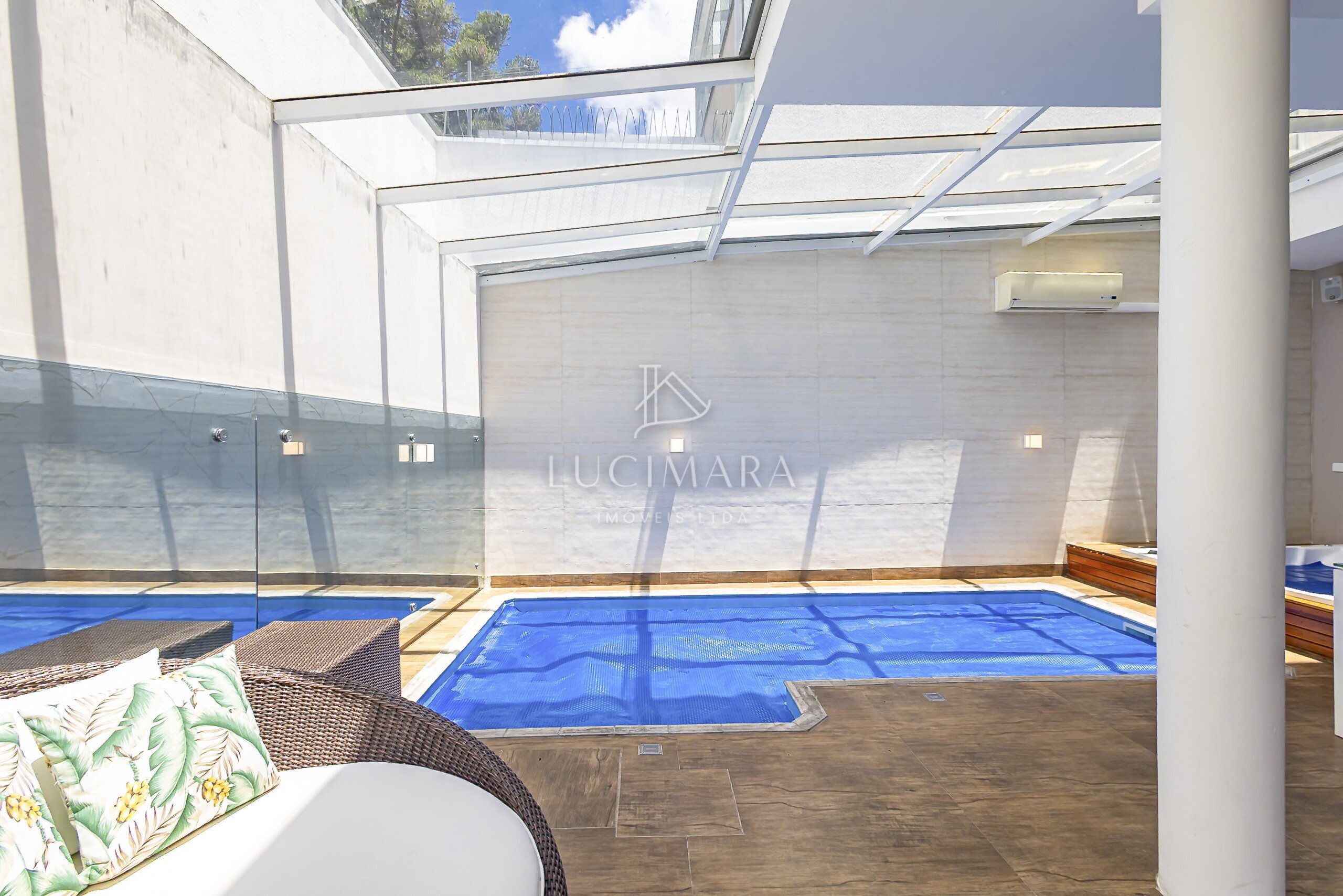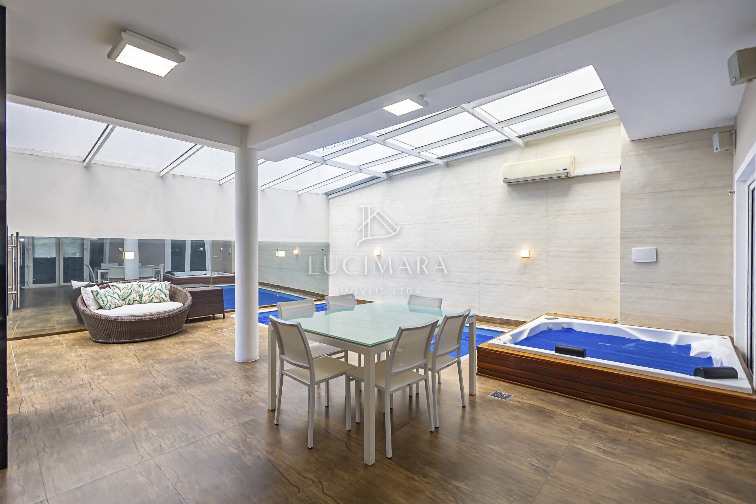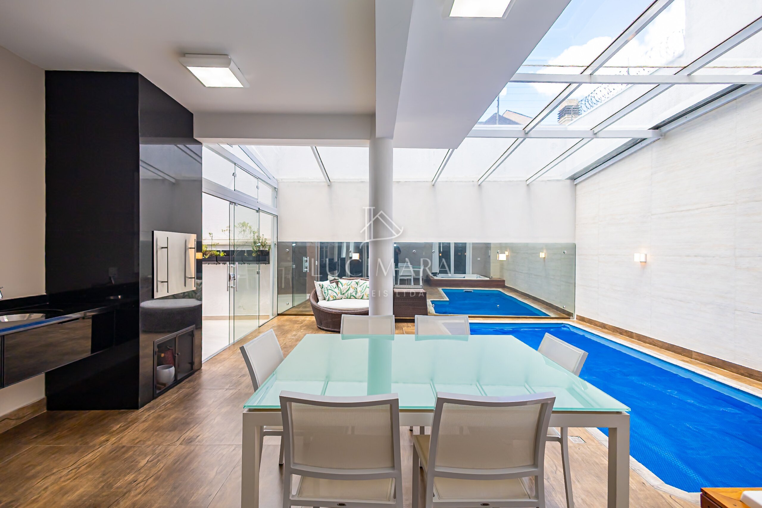 MARAVILHOSA PISCINA COBERTA E AQUECIDA, E O SPAR RETANGULAR E INTEGRANDO COM O ESPAÇO GOURMET.