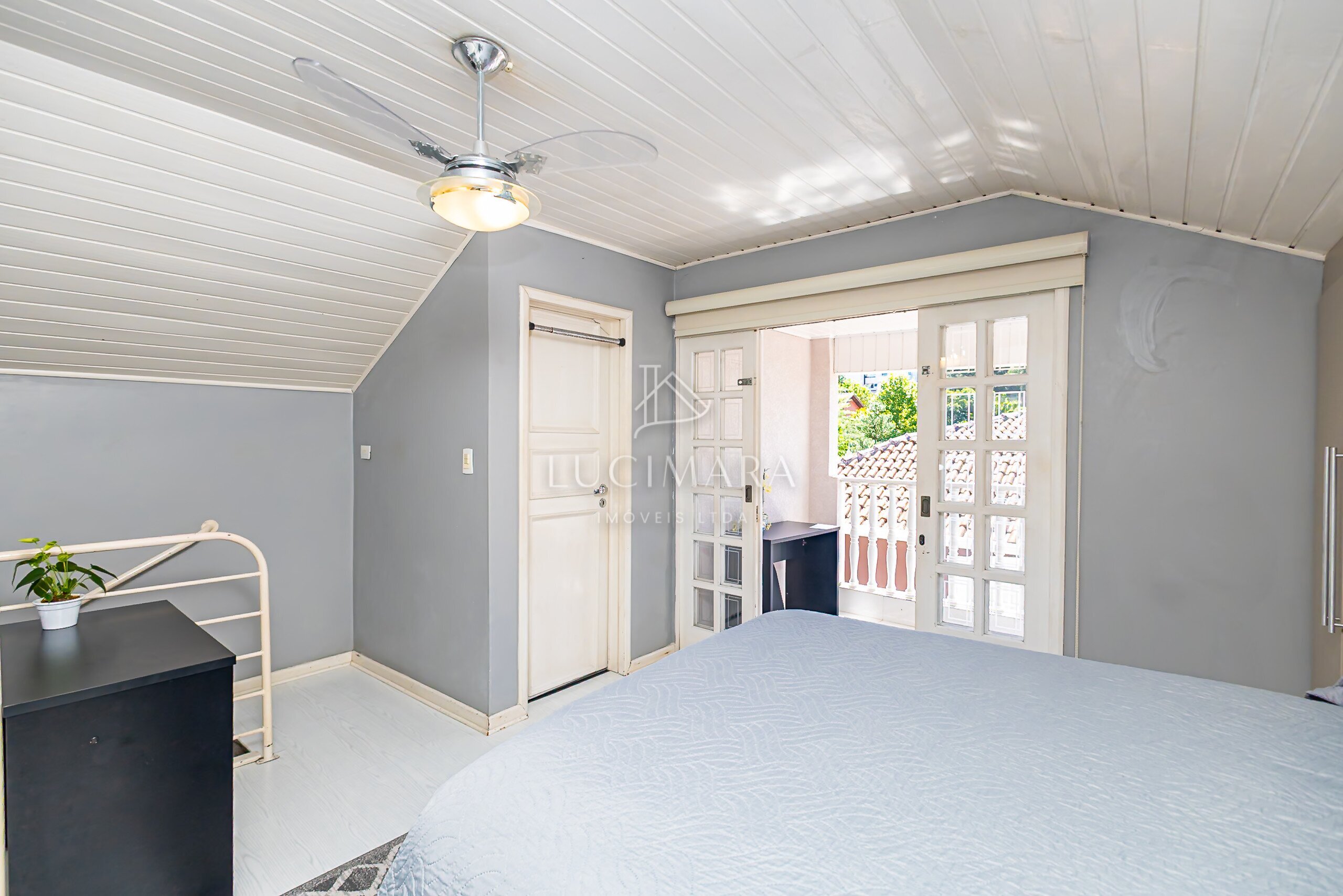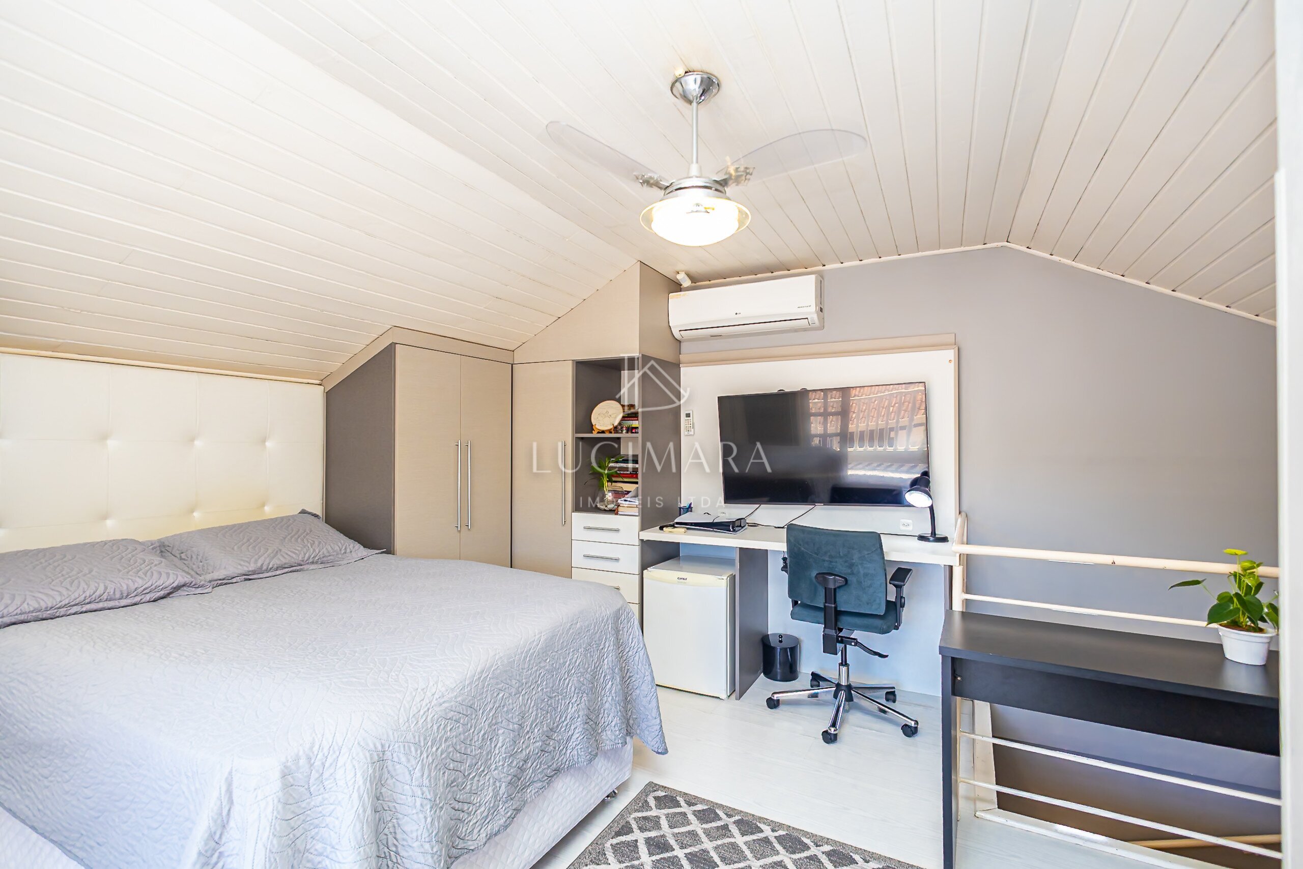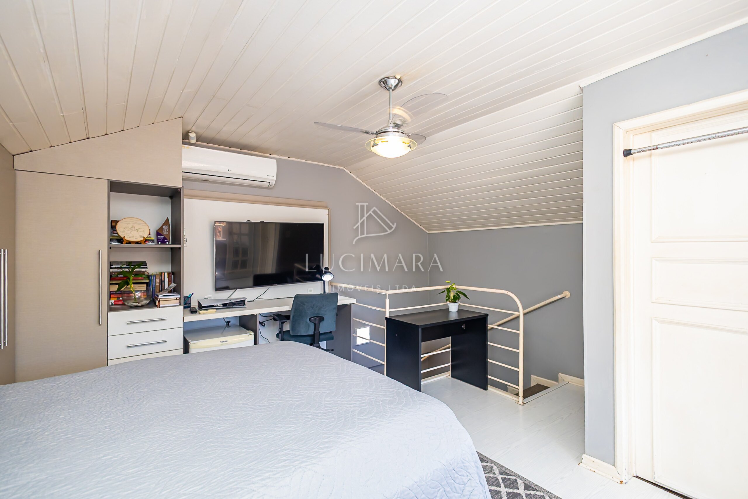 3º Pavimento: Ático com suíte e ampla sacada.