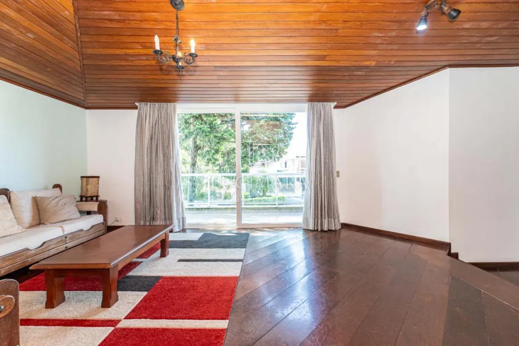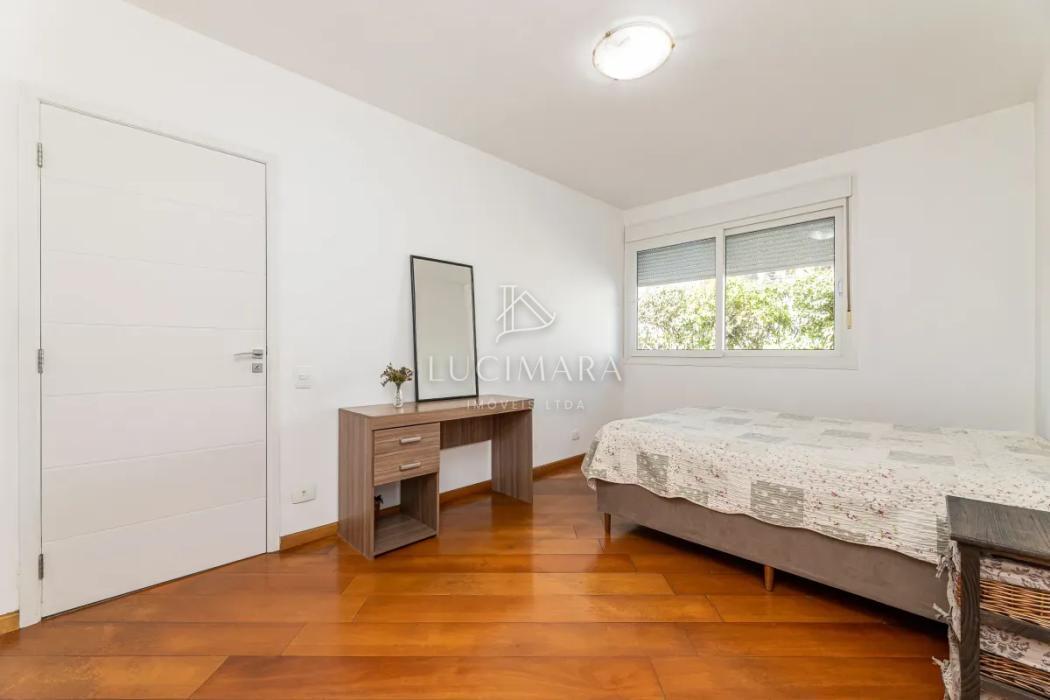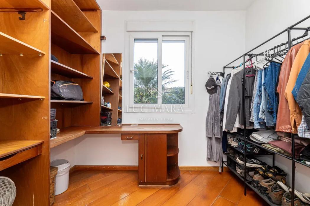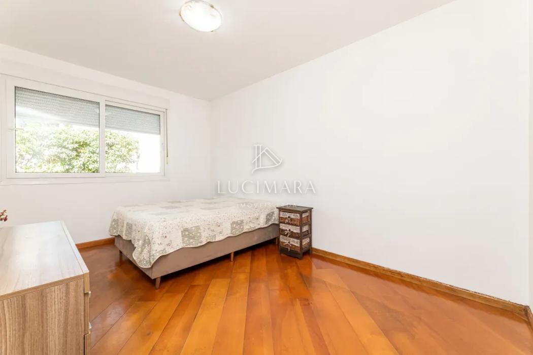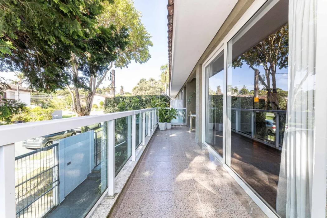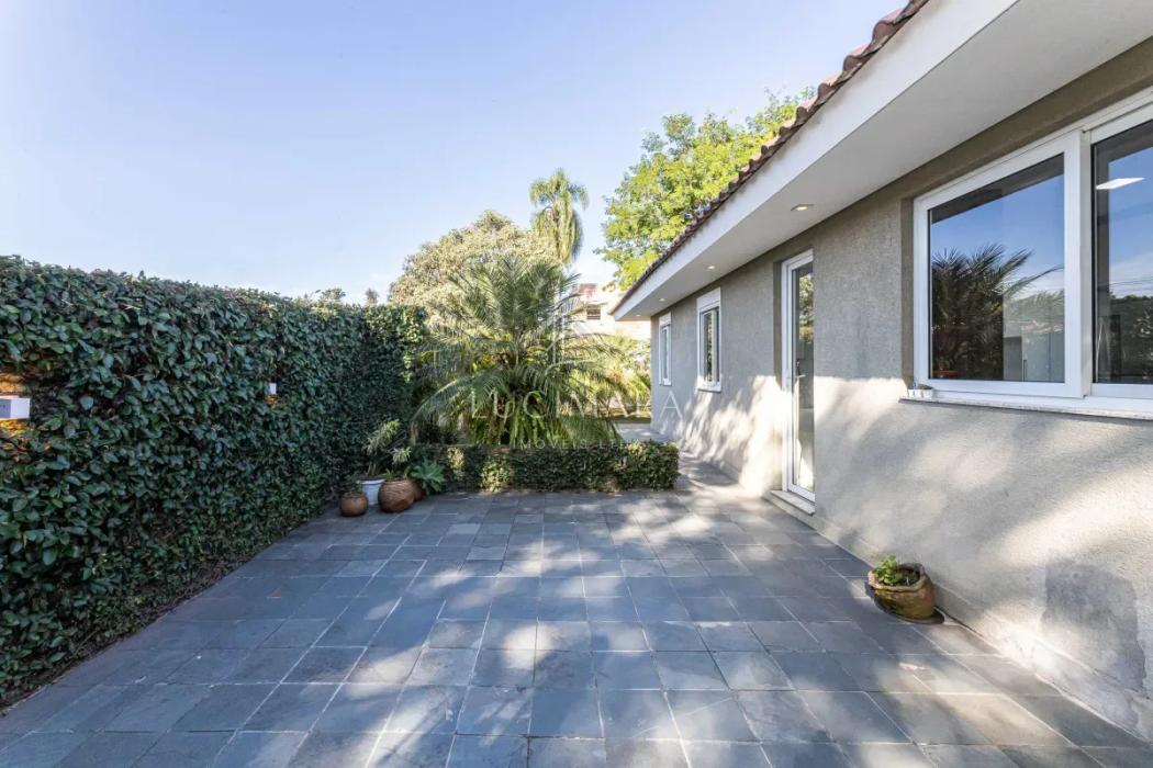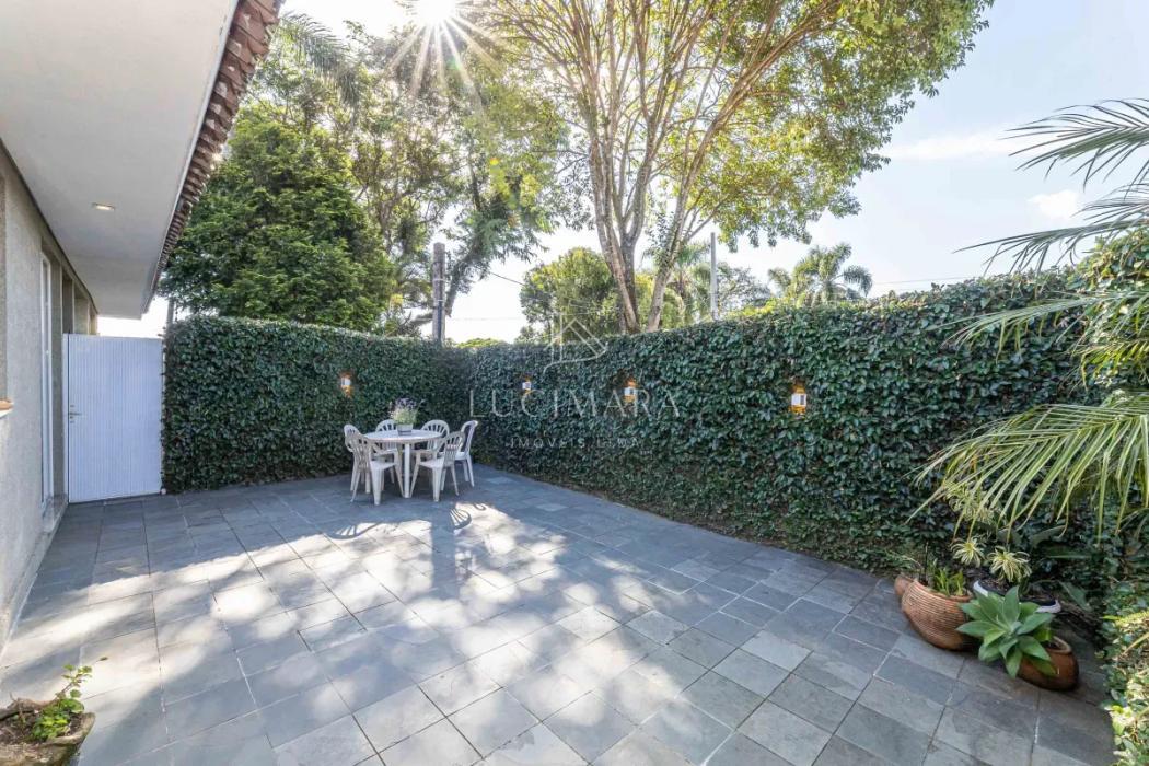 Na área íntima, são 3 dormitórios, sendo 1 suíte, além de banheiro social. A casa dispõe ainda de lavanderia e um amplo jardim que envolve a frente e a lateral do imóvel, proporcionando excelente iluminação e ventilação natural. Os banheiros contam com ventilação por claraboia, garantindo eficiência e bem-estar. Piso em madeira.