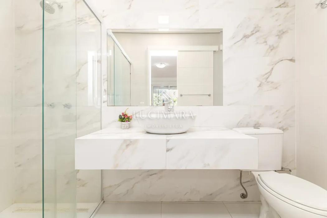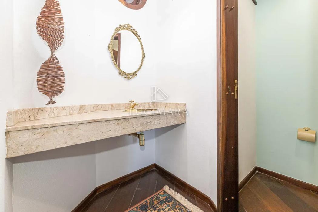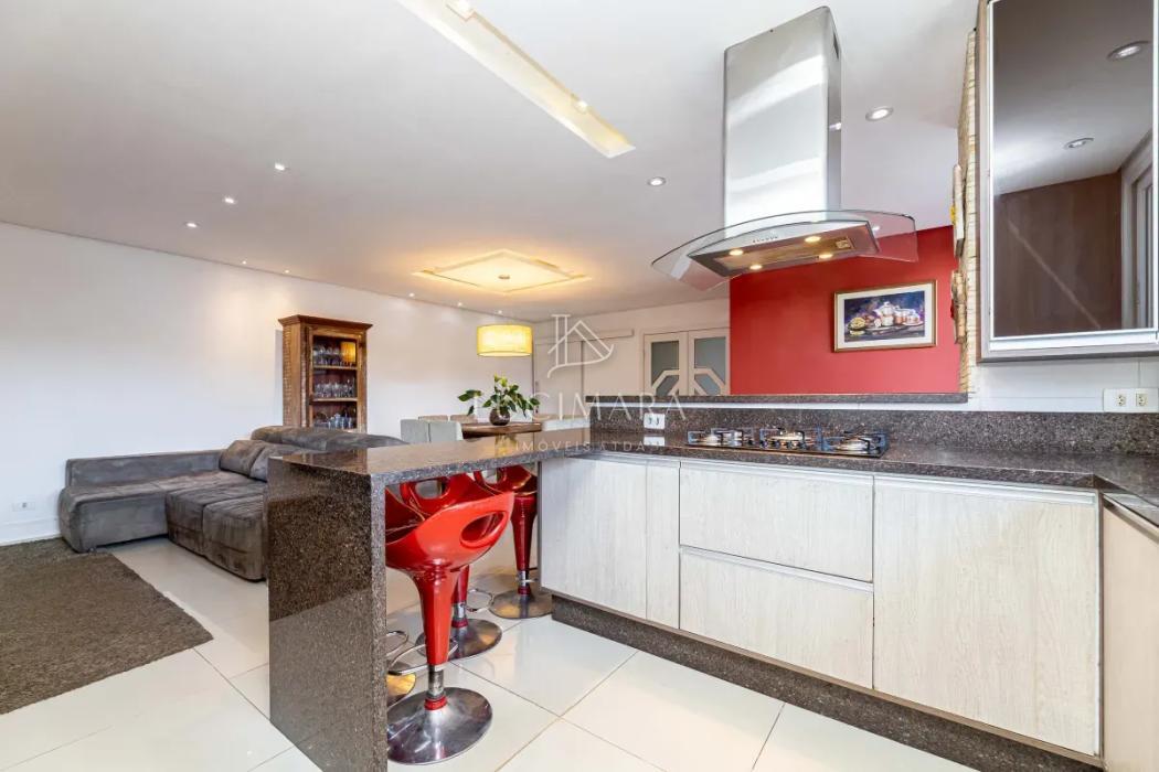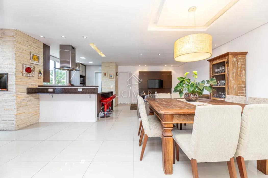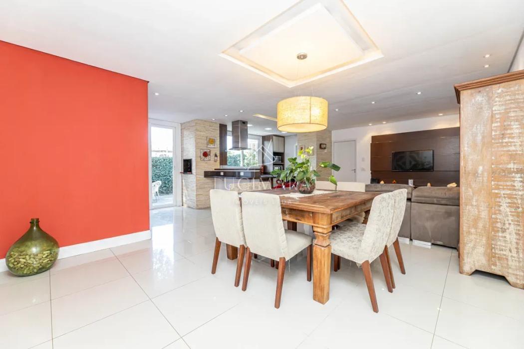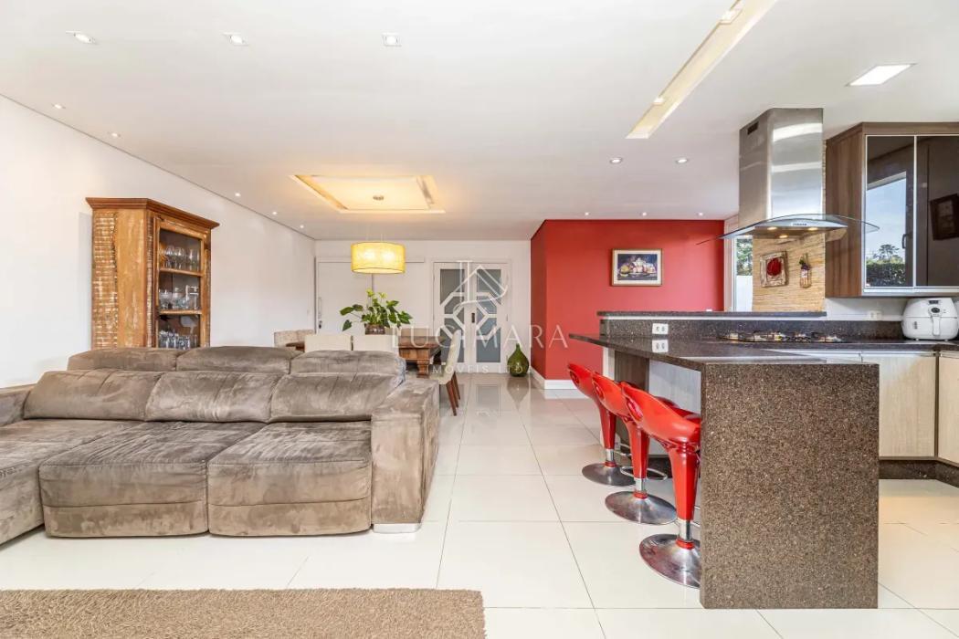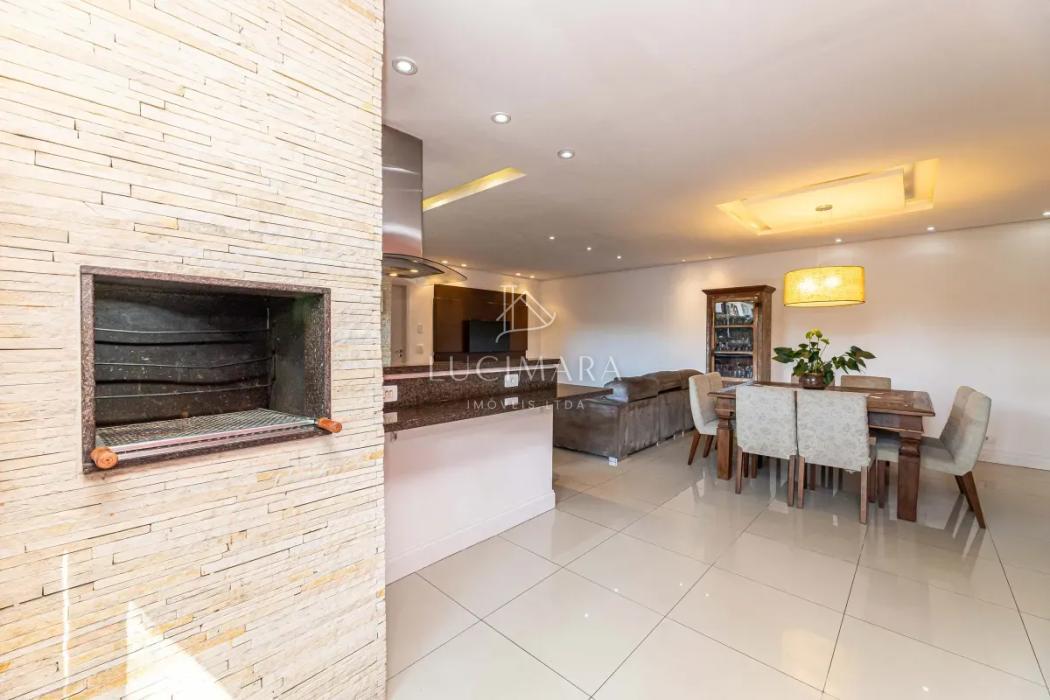 O imóvel conta com um hall de entrada, sala de estar social, escritório e lavabo. Em um ambiente integrado, pensado para oferecer conforto e praticidade, destacam-se a sala de jantar, espaço gourmet com churrasqueira, sala de estar íntima e cozinha, perfeitos para momentos especiais em família. Permanecem no imóvel os armários planejados, fogão e depurador de ar. Piso em madeira e porcelanato.