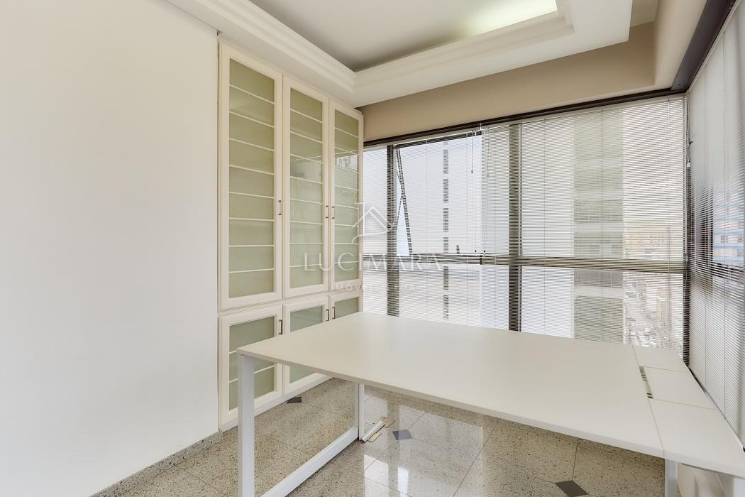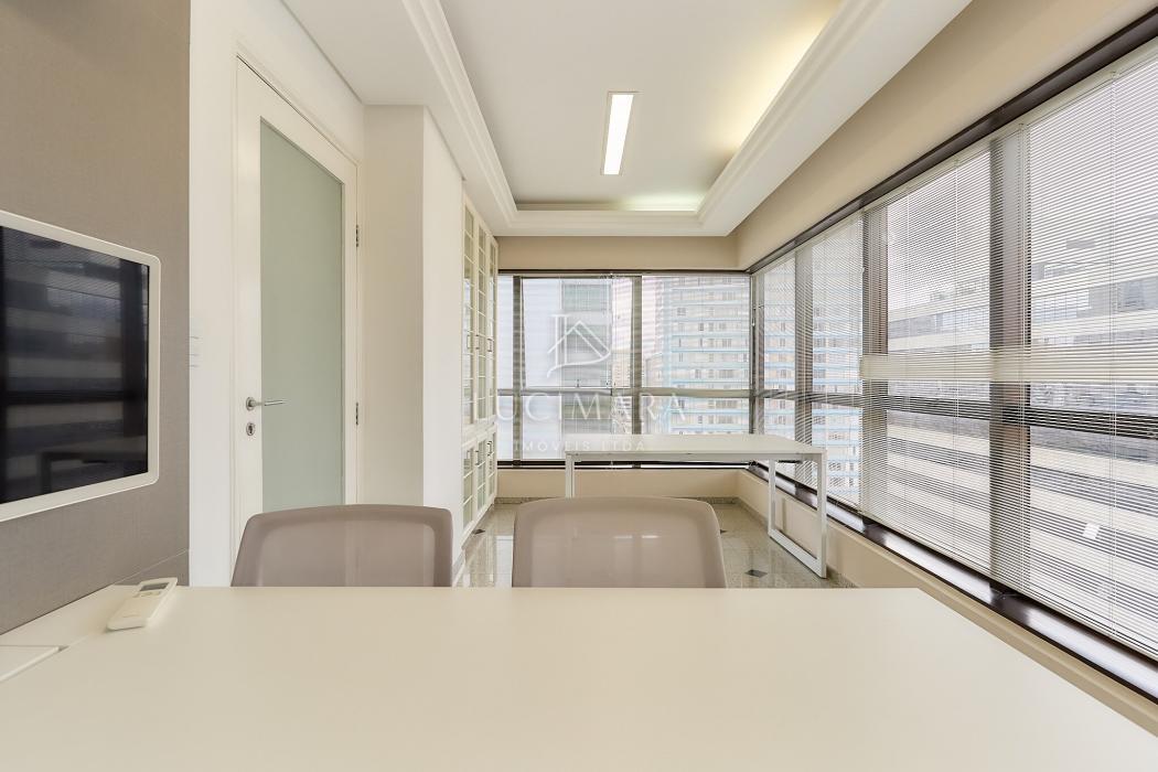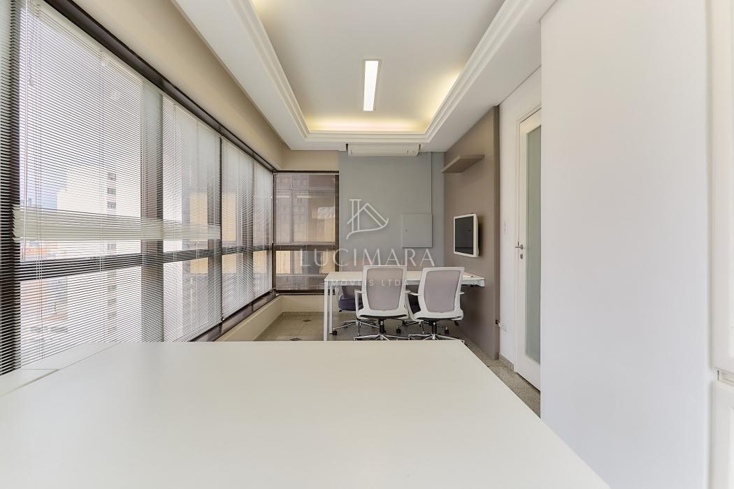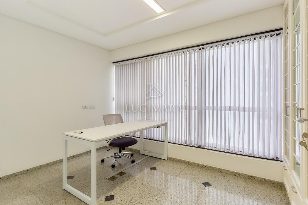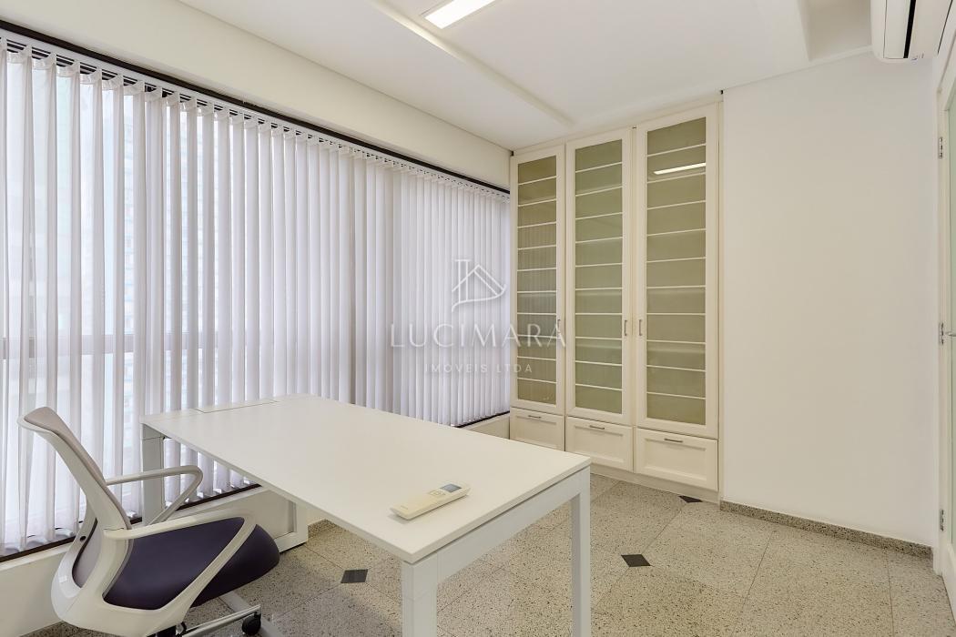Situada em andar alto, a sala conta com ótima luminosidade natural e um ambiente agradável para atividades profissionais que exigem organização, conforto e discrição.