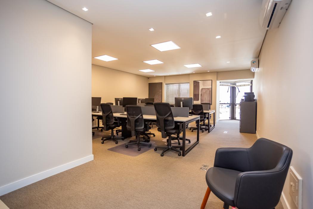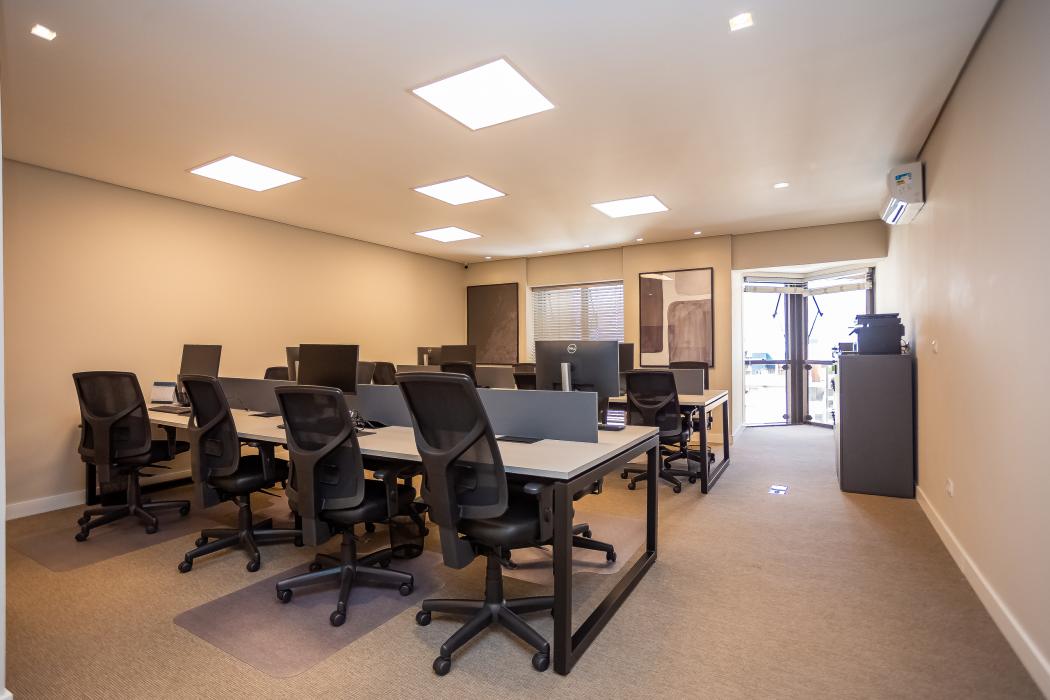 - 1 sala com 16 estações de trabalho e armários