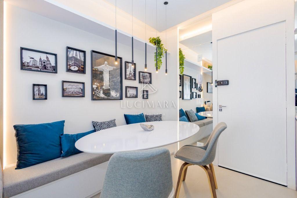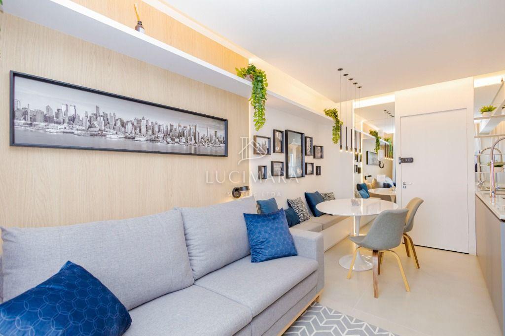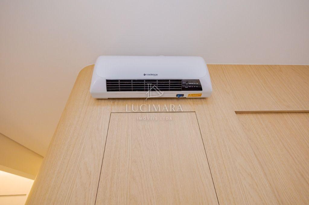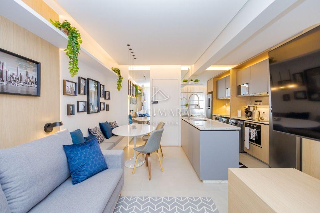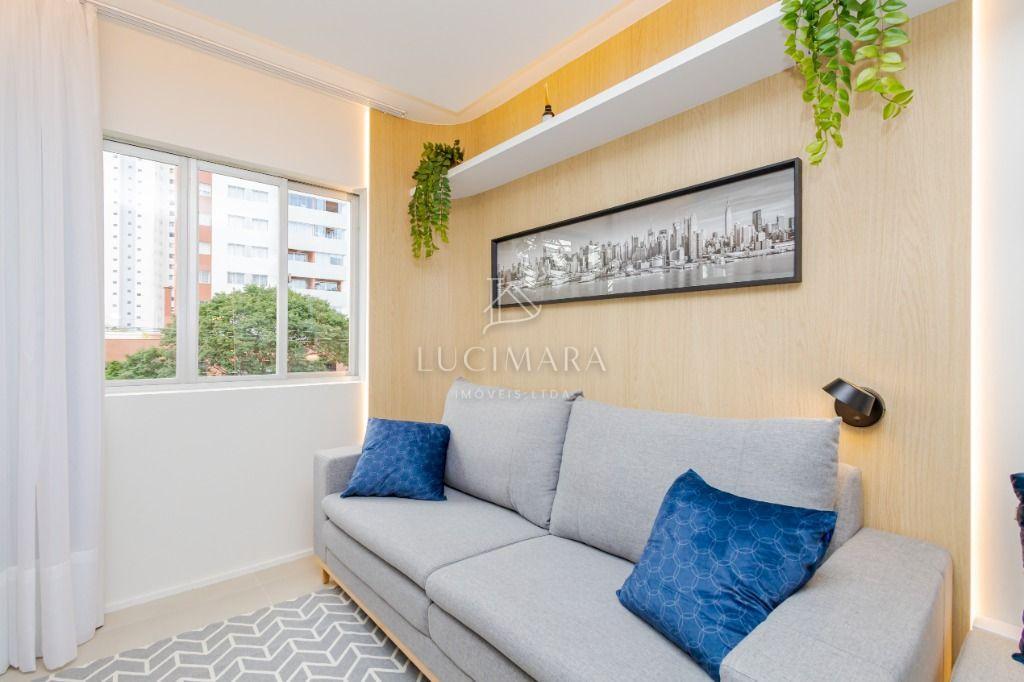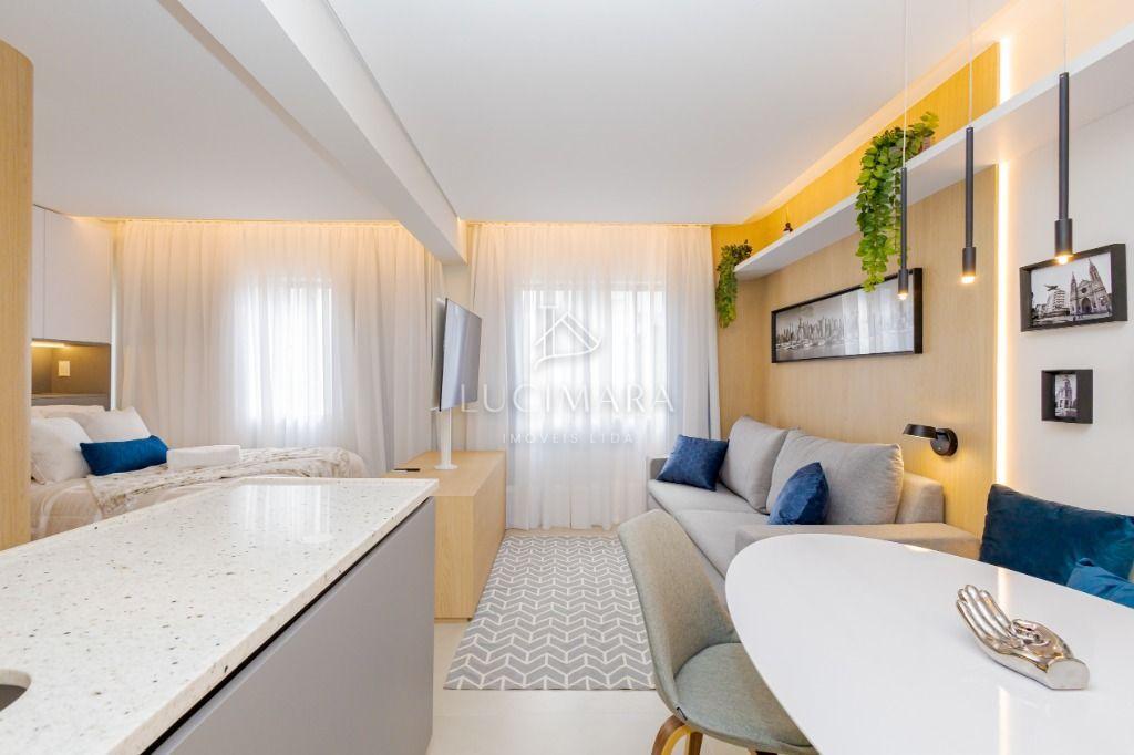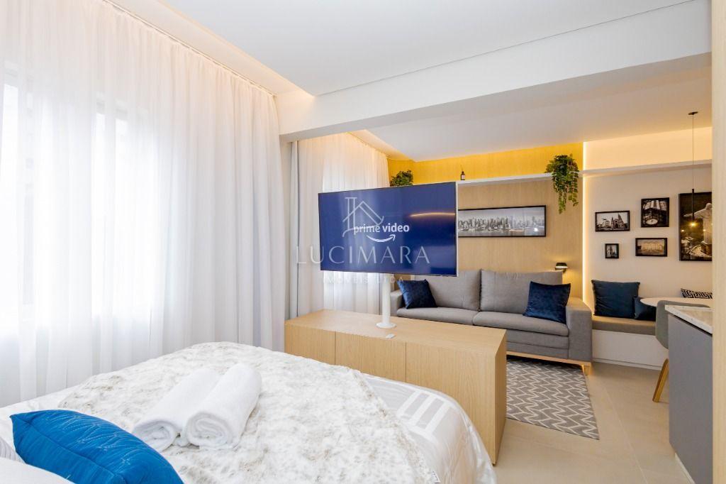 Studio todo reformado com acessórios de qualidade e ótimo gosto. Cozinha planejada com móveis de primeira linha, ficando cooktop, forno e coifa. Sala conjugada com o quarto em teto em gesso e iluminação em led. No banheiro vidro em blindex. O imóvel está localizado em frente a Faculdade Evangélica Mackenzie no Bigorrilho.