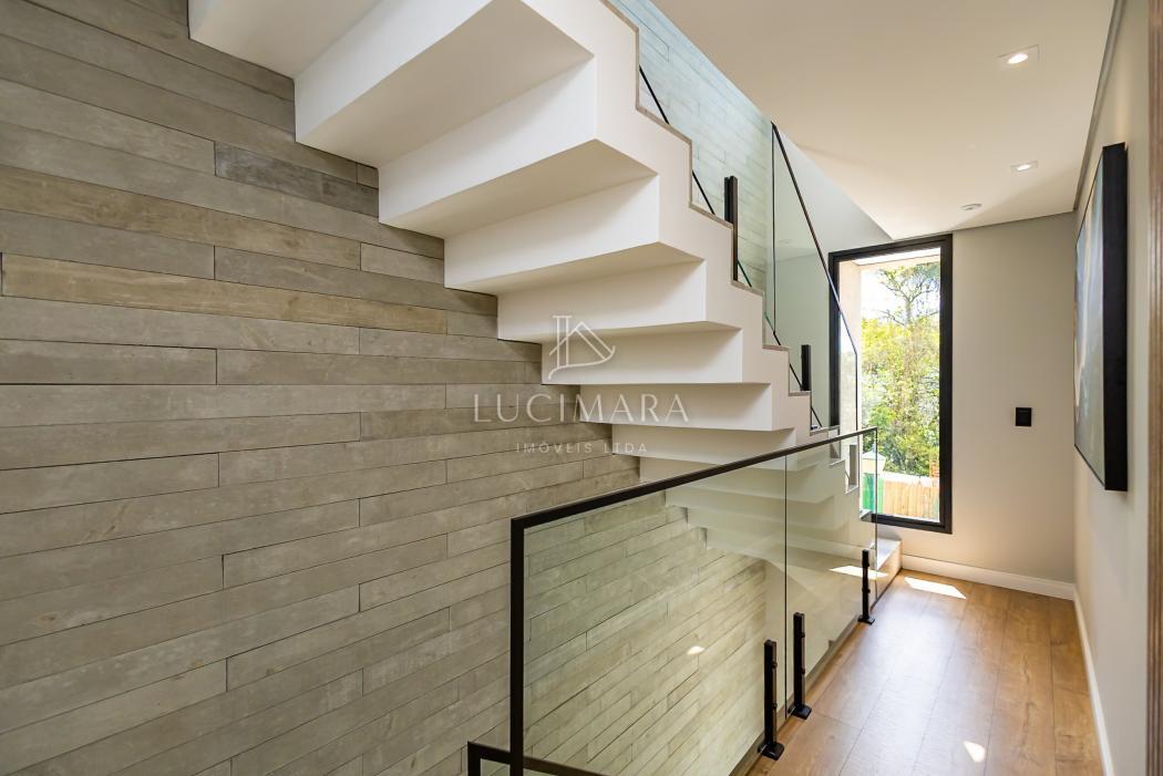 - Escadas com revestimento em Granito e guarda-corpo de vidro e moldada degrau a degrau
