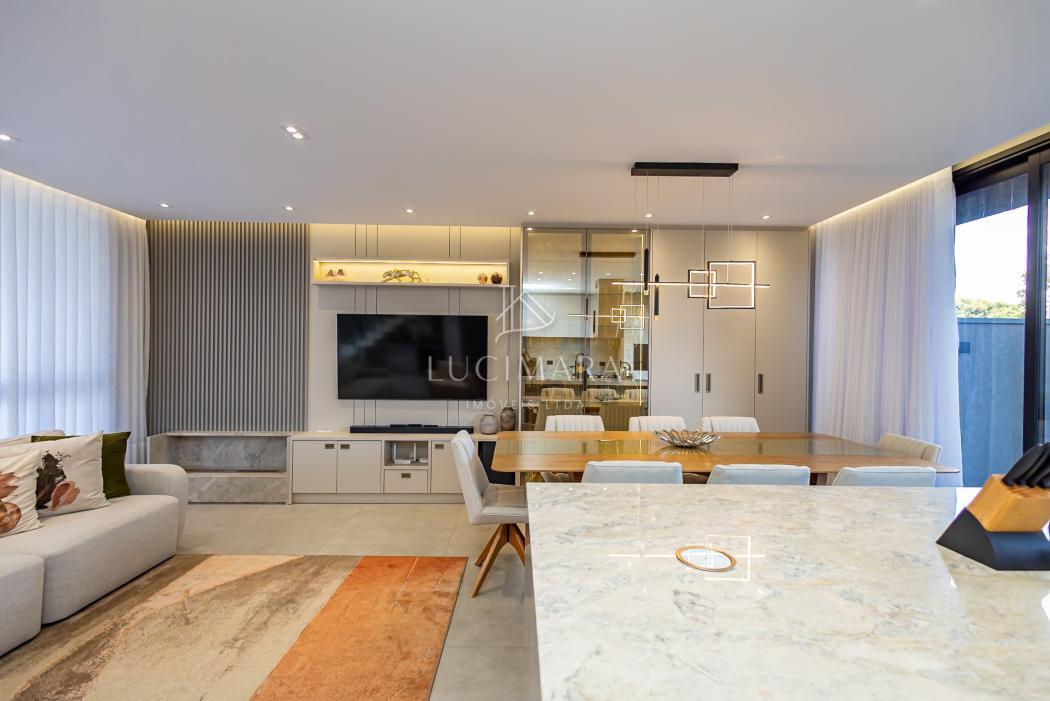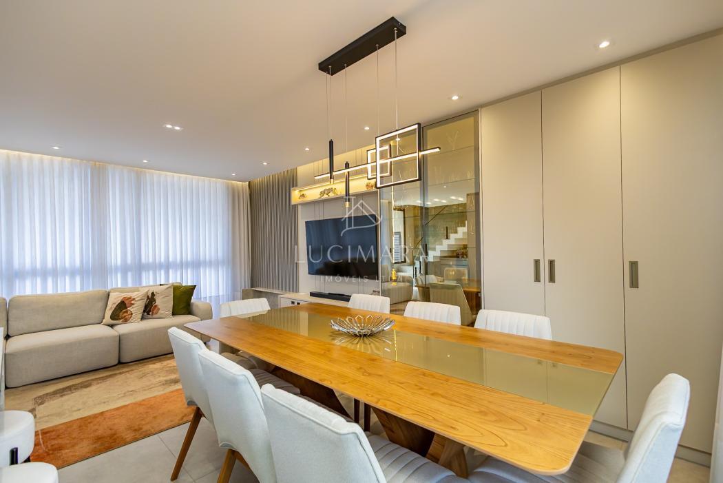 - Sala para dois ambientes jantar/estar mobiliadas e equipada com TV, home theater e lareira